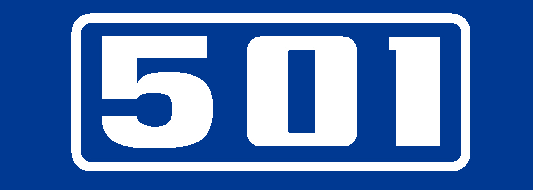 | Ford Sickle Mower Model 501 identification decal. Shown on blue background to help identify the color of the decal. White numbers and border go directly on the paint of the implement. 2-1/8" x 5-3/8" |