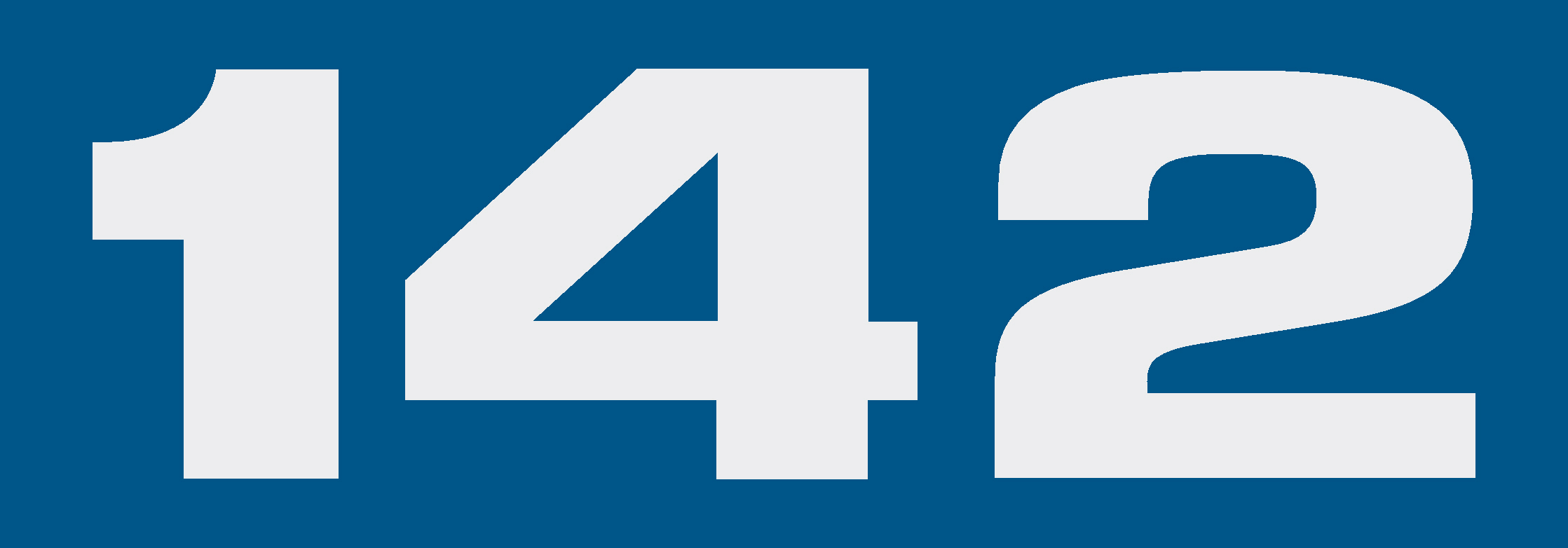 | Ford Plow, Series 142 decal, white numbers to be placed on implement. Shown on blue background to help identify the color of the decal. 3-1/2"x12-1/4" |